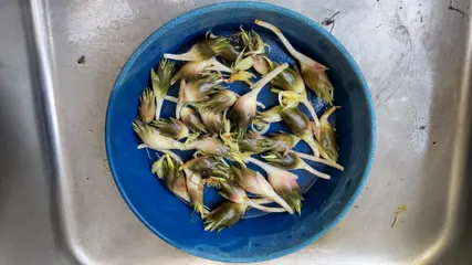 みょうが 毎年お盆の頃、庭のみょうがが取れるのでフト見てみると少し育ち過ぎた又雨で溶けてる物が多数あり収穫しました😃