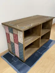 ローシェルフ 以前、作ったWS作品【ローシェルフ】✨自宅にてペイント➕背板にベニヤ板をビスとめアレンジさせて頂きました🎨💕背板…見えませんね😅側面は、よーく見えます😅このシェルフの為にデニムパッチワークのマットも作りました🎶殆ど見えないけど、その無駄な感じが好きっ🤭デニムパッチワーク、キルト芯、キルティング生地と