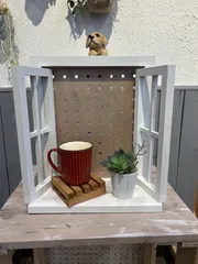 窓型ウォールラック🎶 昨日、MyストアのWSで窓型ウォールラックを作りました🛠️初めてスタッフさんとマンツーマンでのWSでとても楽しかったです🥰お店で白くペイントして家に帰ってから下手くそな汚しをしてみました🎨それに昔々に作ったアクセサリーを飾ってみました💍