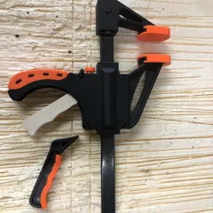 レバーの折れたクランプを修復 クイックバークランプのレバーが、ボキッと折れたので修復したときの話です。いや~、まさか折れるとは思っていなかったです。 レバーを引くと締め付けが強くなっていく仕組みのクランプですが、「もっときつく締め付けるぞ~」とギュッと握っていたら、急に手応えが軽くなって、ご覧の通りに。 クラ
