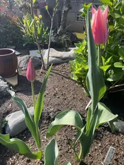わぁ、花壇お花いっぱい🥰可愛いな〜🌷✨なんかひとつだけ咲いてるのってけなげです。あとの子も追随して咲いてくれたら嬉しいですね😉チューリップは、個体ごとの個性が強いです。同時になんて、そんなことは知りませんって感じにポツポツ咲きました😅 うちの寄せ植えチューリップも先週投稿に書いた通り咲いてきましたよ