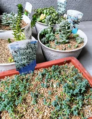 カインズ、セダム入荷。仲間が増えました。 カインズさん店外のグランドカバー系の苗の横にセダムの黒トレイが並んでました。沢山のセダムに大喜び、帰宅後すぐに植え替えました。日が落ちるのが早くなってて、LEDライト🔦照らしながら、一寸怪しい人になってました。「ダシフィルム」という名前ですが形、性格が似てる気がして購入。「パープル・ヘイズ」と同じと