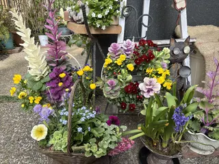 🪷春のかご寄せ植え 春の花の寄せ植えのwsに行って来ました。カゴはプラスチックで水はけも良さそう5種類6つのお花を寄せ植え、ペチュニアは色も選べて楽しかったです^_^