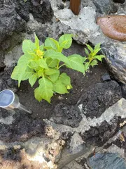 きっと零れ種が飛んで来て芽を出して株になってたので、小花壇に移植してあげました。