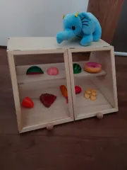 100均の材料だけでカフェ風ショーケース トータル1200円だったかな早速、娘がおままごとに使ってた…