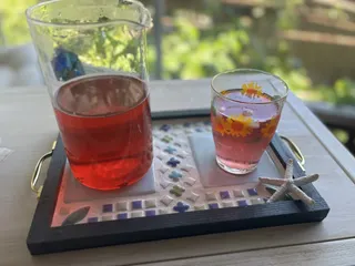 りんご酢、買って帰ったので、今日は庭の赤しそでジュース作ります😆