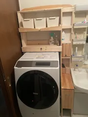 先日完成した隙間収納と洗濯機奥の壁面収納が完成してそこに塗装をしてみました^_^塗料は亜麻仁油を使って木目を生かす方法を取りました。照明の関係で少し違いが出るかもしれませんが、私の感覚では1✖︎4等のホワイトウッドは若干の色の変化はありますが余り変化無しの感覚でした。パイン材については、かなり変化が