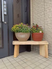 フラワーテーブル(銀杏の木ver.) ■材料銀杏(いちょう)の木 ■使用工具(使った工具や材料)・のこぎり、電動のこぎり、電動やすり(サンダー)、インパクトドライバー、カンナ・紙やすり(60番、120番、240番、400番)、ネジ90㎜、 ■作り方・基本的には、天板と脚になる材料をカットしてネジで留めてやすり掛けを行