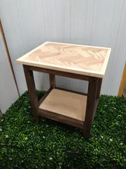 ヘリンボーンのサイドテーブル 楽しみにしていた「ヘリンボーンのサイドテーブル」のワークショップ‼️クリアのペンキを妹と折半で鶴ヶ島のカインズで購入して、持ち込みました😊沢山の工程があったけど、先生に手助けしてもらいながら、仕上げました✨