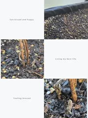 ベランダ菜園2025(🍅ミニトマト_①今季は1鉢に3苗) 今季は1鉢に3品種をまとめて植えてみました♪この植え方が趣味の園芸で紹介されたので、狭いベランダで色んな種類を育てたい(食べたい🤭)わたしにはピッタリ✨️と思いました🎶①苗は外側に斜めに植えるとしっかり根が伸びる②花の着いているほうを外側に向くように植えると収穫しやすくなる って説明して