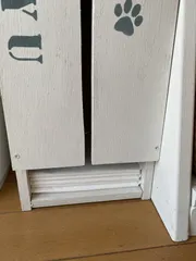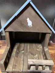 豪華ペットベッド 予定を見た時から作りたかったペットベッド。鋸苦手なので背面少し隙間ができてしまいました😞心配しましたがすぐに入って寝てくれました♪ウッドデッキみたいで可愛いです。屋根に肉球スタンプ🐱
