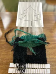 昨日は数ヶ月前から楽しみにしていた、3回教室のつづれ織。1日4時間❌3回なのでかなり根気のいる作業! 🧶を4本取にして少しずつ上下にして編んで行きます。🧶の厚みとクリスマス🎄ツリーなんですが🌲グリーンのグラデーションも素敵で!!!あと2回ありますが家族👪でのクリスマス🎄を楽しみにしつつ編ん