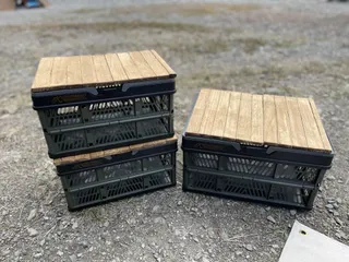 カインズで売っている「折りたたみコンテナ」の色がカッコよかったので、キャンプで荷物を運んだりするのに使っています。 ちょこっとDIYで100均の木材で畳める「天板」を作って、テーブルにしました。 ※以前投降した「コーヒースタンド」の写真。ここで映っているテーブルも実は「オリコンテーブル」