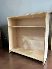 テーブルで過ごす時間が長いのでついついものが増えがち🥲スッキリ収納したくて可動式のワゴンを作りました🪚 テーブルの下にピッタリサイズ✨もう少し手を加えたいけど、今日はここまで😊