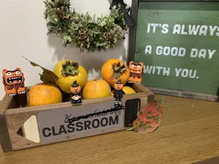 ハロウィンキャンペーン2022 秋〜🍁我が家の玄関も秋🎶〜 最近作ったスモールボックス💕🔑や懐中電灯🔦やらスッキリしました👍 なのに、、、いつのまに、、、 柿ちゃんが、、、😁山盛り 笑笑、、何だか、秋の色にまとまっちゃった あまりなんも考えてない旦那さまたまたま、置いてみただけーー