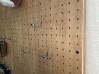 玄関に写真を飾ったり、鍵をかけたりするものが欲しくて、有孔ボードを使用して作ってみました!