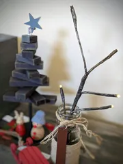 100均で見つけたブランチツリーもどき?可愛かったので買ってきました。本体を少しアンティークゴールドでおめかしして土台にする瓶には麻ひも巻いてタグをぶら下げてみましたよ。夜間点灯するとこんな感じです。