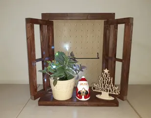 窓型ウォールラック 10月のワークショップで作りました。12月に向けてクリスマスっぽくしてみました。(飾りは100均で買ったもの…)