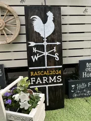 サインボードロング🅰️ 以前から欲しかったサインボードロング🅰️遂に参加しました。金額の事もあって見送ってきたけど、作って良かったです👍風見鶏……見本とは色逆バージョンで色々と手を加えずシンプルに仕上げて庭に飾りました。brushボードの経験少ない私にアドバイザーさんから色んなやり方とか失敗例とか教わりながら、自分なりには
