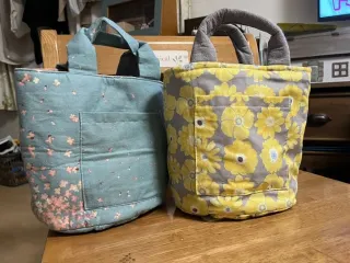 手作りトートバッグ 内ポケットつけました!バケツ型は結構ものが入ります。🌸さくら模様のネル生地が気に入ってまーす