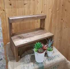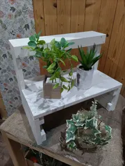 フラワースタンド2段 フラワースタンド2段を作りました。ホワイトのペンキで仕上げました。楽しい時間を過ごせました!