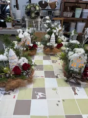 ワークショップに参加してきましたライトを選ぶときにツリー🌲が2個しかなくてじゃんけんに負けて家を選びました3種類の家から1番大きな家🏠を選びました わたの実から殻が壊れないように、わたを取り出しましたわたの中には硬くて丸い種が入っていましたラメの振り方も初めて教わりました 参加者