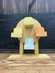 店舗オリジナル作ってきました 店舗オリジナルの作品 『観覧車風ミニ鉢スタンド』 を作ってきました。 色を5色まで使用できる楽しい作品です。本体は「メープル」色を使い、ゴンドラの所の色は持参した『ホワイティカラーズミニ』の 「わいわいオレンジ」 「にこにこイエロー」 「まなまなグリーン」