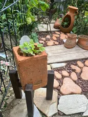 ミニプランタースタンド ミニプランタースタンド、作ってきた。簡単と言えば簡単。でもこれって木組みなんだよ。ノコギリで印をつけてノミを使って木片をスパンと切り裂く心地良さ。金づち使って木殺し。はてさて結果はどう出るか。出来た!申し分のないはまり具合。ビクともしない♪ アドバイザーさんが申し訳なさそうに「それ、分解し