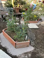 ↑after↓before先日のユーレカレモンの木のところ(リンク→ https://diy-square.cainz.com/announcements/iooiwut6t1y5pkmk )にならって小菊花壇にも施しました。↑before画像は、花壇の周りに溝を掘った様子です。そこに人工砂を仕込ん