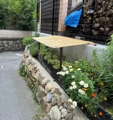 ハーブガーデン夏仕様 ハーブガーデンに植えたイングリッシュラベンダーの梅雨対策で作ったポリカ波板の屋根https://diy-square.cainz.com/announcements/ivghimly4rzcxmek風通しが悪そうに思えたのですだれにしました。ガンタッカーで止めてあります。