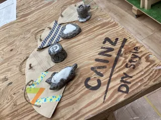 き切り株と猫ちゃんこ細かい石鹸とお水を混ぜて成形しますおお家のオブジェになりました