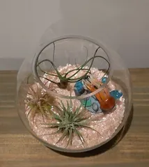 エアプランツ3つ揃ったのでテラリウムを作ってみました☺️横から見たところガラス容器はカインズの園芸コーナーでカラーサンドは100均で一緒に入っているのは水族館ガチャのクラゲです😆 エアプランツは時々霧吹きをかけてあげるので 出したり入れたりしやすいように余り複雑にはしませんでした😁