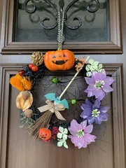 ハロウィンのリース ハロウィン🎃のリースをアメリカンフラワーで作成して玄関に掛けています。