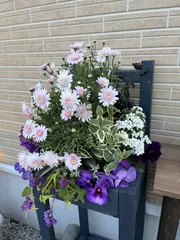 地元開催の寄せ植え教室に参加してきました♪♪9種15株の盛り沢山🌺植え込みできるのか心配でしたが、バスケットのスリットの扱い方までレクチャーいただき、盛り込むことができました😊植え込み後から一週間で見ごろを迎えるはずでしたが、先日の雪❄️で、ちょっと伸び悩んでます😓