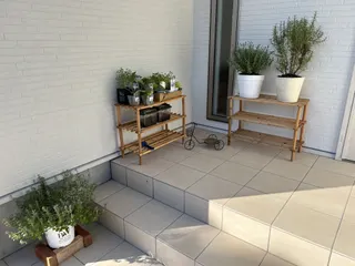 グリーンラックとレンガ台 玄関ポーチ用に作ってみました。