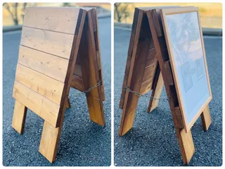 職場de DIY🛠️看板作り✨ 職場の屋外に1×4材を発見💡雨ざらしになっていたので、汚れも割れもあるし、反りも凄い💦でもそのままにしておくのは勿体無い‼️「使って良いよー」って言われたので、職場のイベントで使う看板作りをすることにしました🙌A3サイズフレームを取り付けられるようにしたいなと思い、100均で検索🔍フレームの大きさか
