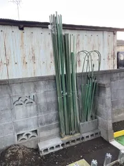 園芸支柱の保管方法 豆知識で良いのかな?とレシピ投稿します。先日の作品投稿「土中に隠す その7」(リンク→ https://diy-square.cainz.com/announcements/cj2wt0rxpwnnozje )で一旦移動した園芸支柱を元に戻しました。ブロック塀の透かしブロックの穴にアルミ線を輪っか状