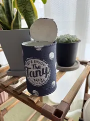 前回の雪の日にトマト缶にペイントして、ステンシルをしたのに大失敗。白で塗りつぶして途方にくれていましたが、気を取り直してステンシルシートからラインを写しとり、細筆で手書きしました。遠目に見るとそれなりに見えるなぁと自画自賛👏😅ひとつ完成したのでプチ充実感感じてます。