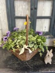春のカゴ寄せ植え 花が咲いてないので、寂しい😅