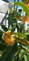 金木犀が咲いていた。 先月頃から、咲いていたみたいですが気付きませんでした。玄関前の花壇の端っこの方で鉢で育てていたので。朝はバタバタ、夜は7時頃になるので見えなかったですね。去年までは、咲いたのかも判らずでした。💧