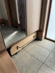 下駄箱下空間の活用で玄関スッキリ! 玄関をスッキリさせるためのDIY。すのことちょっとした板。車輪と取っ手をつけて完成!下駄箱下空間を活用。靴を3足出し入れできるようにしています。