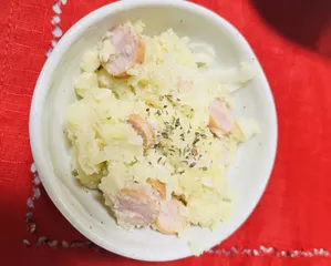 こちらの投稿で、どなただったかずっと考えてて探したんですが見つからずの……シャウエッセンのポテトサラダです✨ハムや、いつもの野菜や卵も大好きですが、その方のシャウエッセンが気になって作りました😊大人のポテトサラダ🥰‼️って感じで、とーっても美味しかったです😋新玉ねぎスライスと味付けも荒コショー、塩、