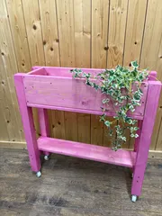 キャスター付きプランターハイスタンド 大好きなピンクで塗装してきて早速家に帰って買って開いた花を寄せ植えして置いてみました💕