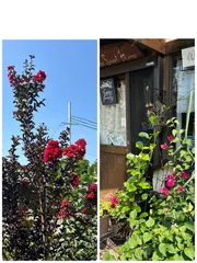 夏真っ盛りのお花達 スタジオのある別宅玄関通路で胴葉色の真っ赤な百日紅とさし芽で増やしたブーゲンビリアが共に咲いてくれました。どちらも開花期間が長いので、しばらく楽しめます。