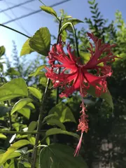 🌺咲きました ぐんぐん背が高くなっていってやっと一輪開花しました。夏を感じさせます