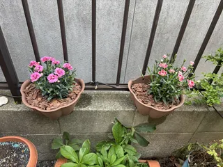 越冬しなかったゼラニウムの代わりに。ワークショップグリーンで学んだ知識が役立ちました❣️ちょっと早い自分にお疲れ様のナデシコですww