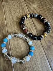 旦那の初めての作品🤣 那須高原ドライブ🚗信号待ちしていたら🚥天然石手作り店看板🪧いつも手作り物に興味示さない旦那💦何故か今日はやってみたいと😮じゃ〜予約取れたらねと‼️即…予約完了😂😂😂ブレスレット作成しました‼️天然石選んで…ゴム通し必死になって出来上がり✨ 私も便乗して作成しちゃいました🤣さすがに1人は嫌だ
