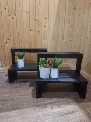 色お揃いにしてみました 以前作った【黒板付フラワースタンド】と同じ色で【ウッドコンテナ】作ってきました。