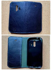 義父から注文 スマホケース ② 折りたたんだ時はこの様になります☺️ アレ( ´◔‸◔`)曲がってる?🤭w𐤔 ご愛嬌ね💕︎って渡しちゃおうꉂ🤣w𐤔 義父から 注文のあったスマホケース 本体は完成しました😊 ① 材料はコチラ 傷が目立たないシボが入った革を使用し