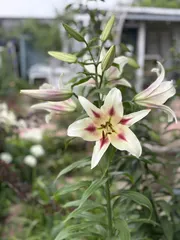 ユリ♪ 庭の百合が咲きました。ニンフ、という品種です。かなり大きな花です♪
